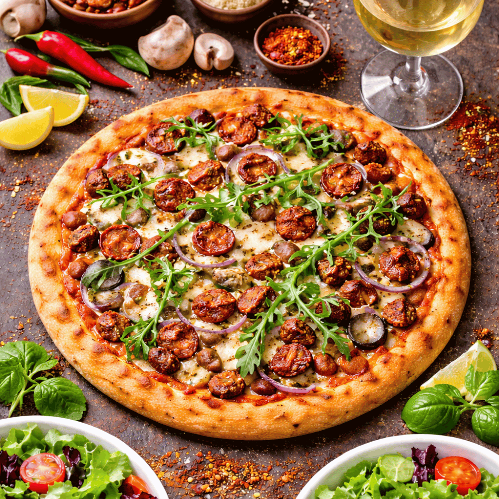 Nduja Pizza, with Nduja, Mushrooms & Red Onion, finished with Rocket